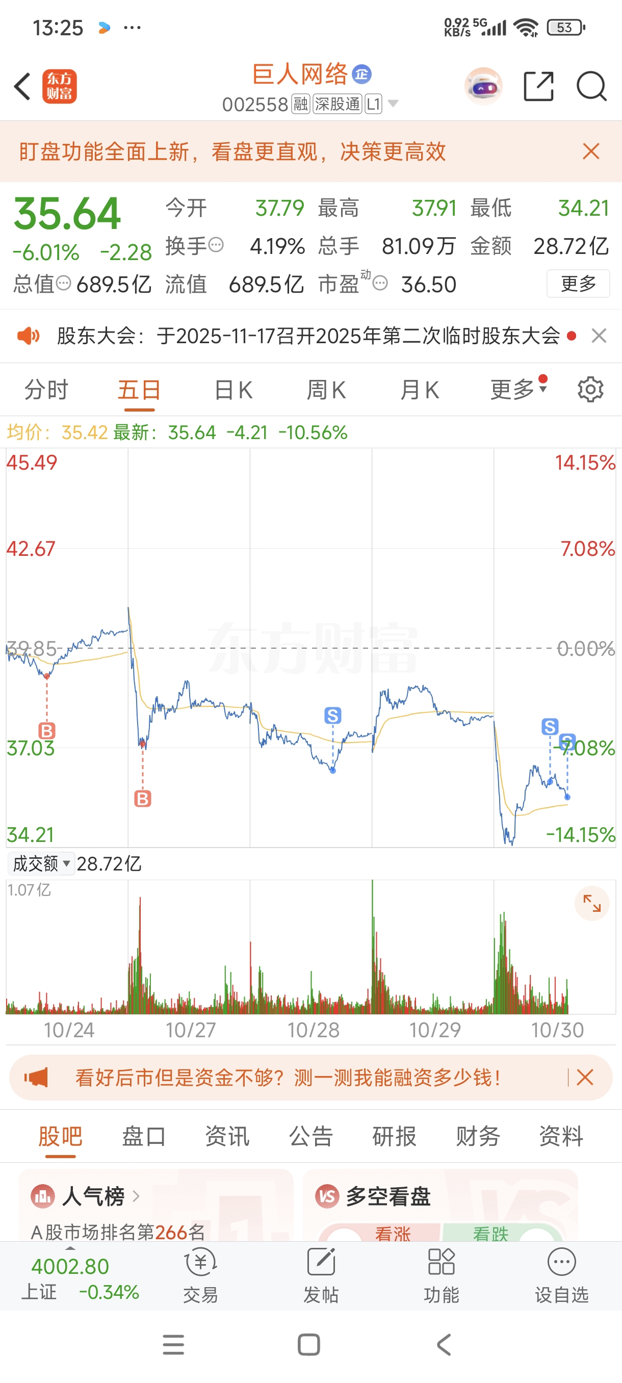 $巨人网络(SZ002558)$ 买到出货的股票,啥时候都是套