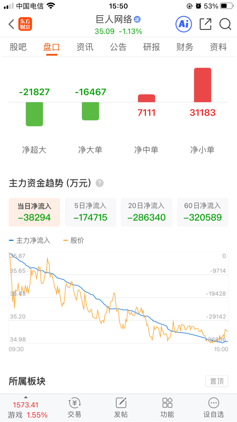 $巨人网络(SZ002558)$  五天跑了17亿,还叫抄底别放弃