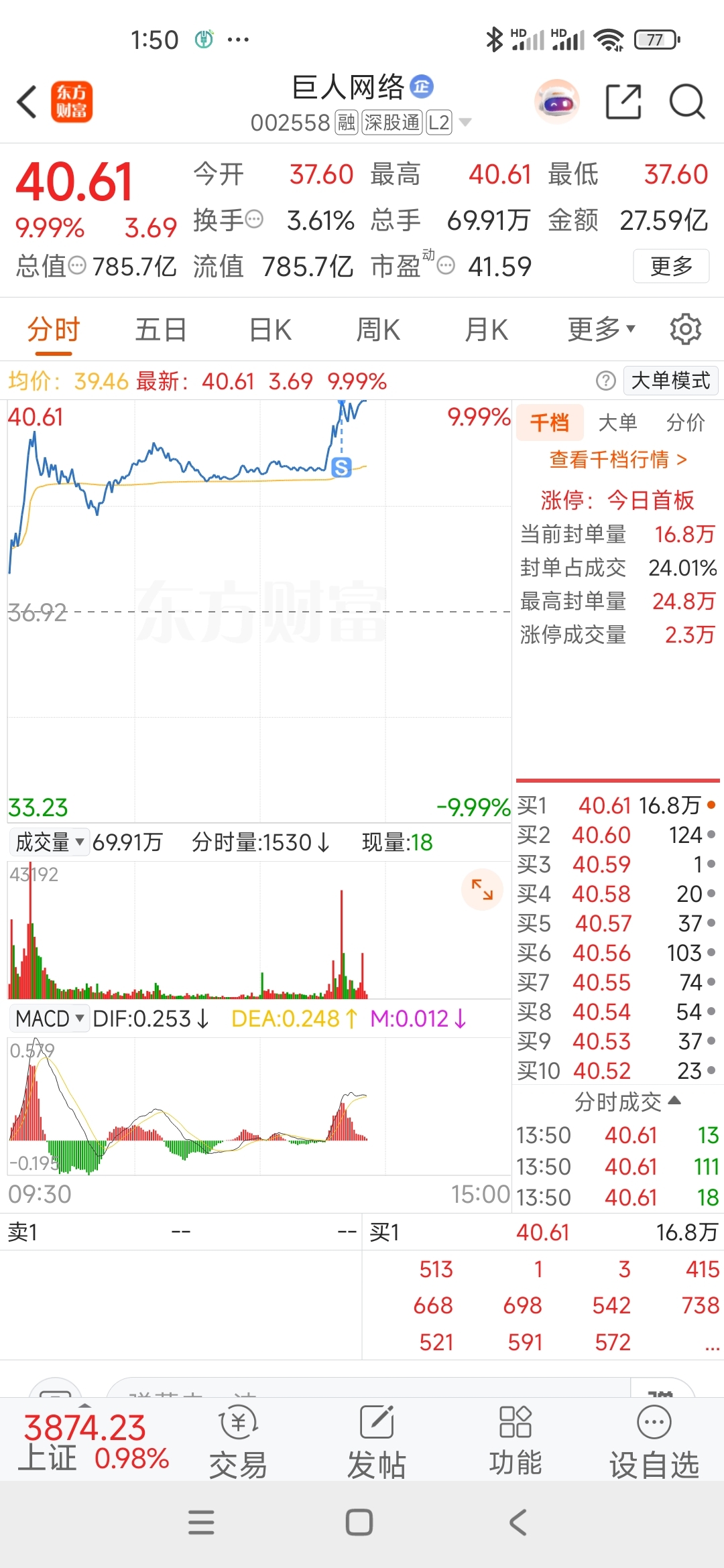 $巨人网络(SZ002558)$ 走了留下来的发财。
