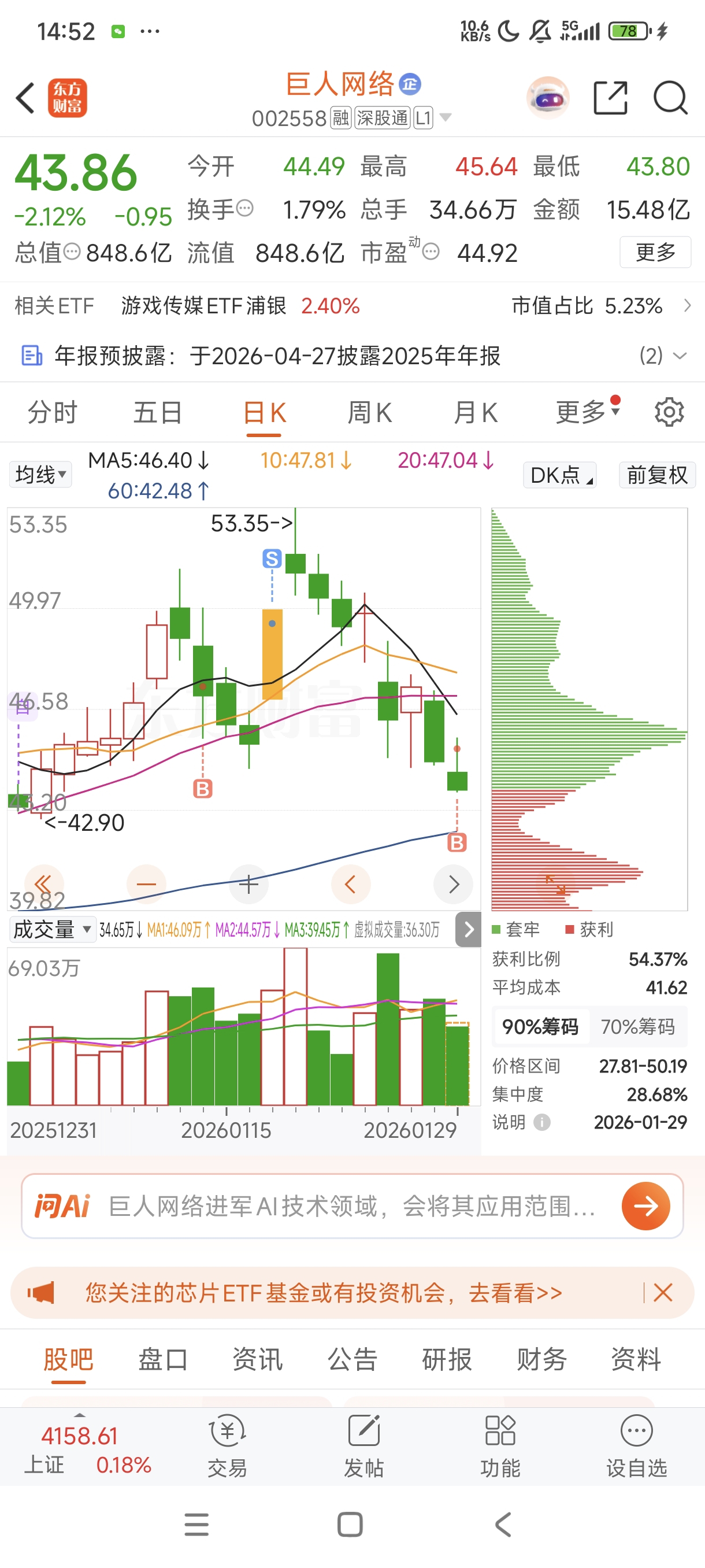 $巨人网络(SZ002558)$ 瑟瑟发抖,卖飞涨停跑这里吃面