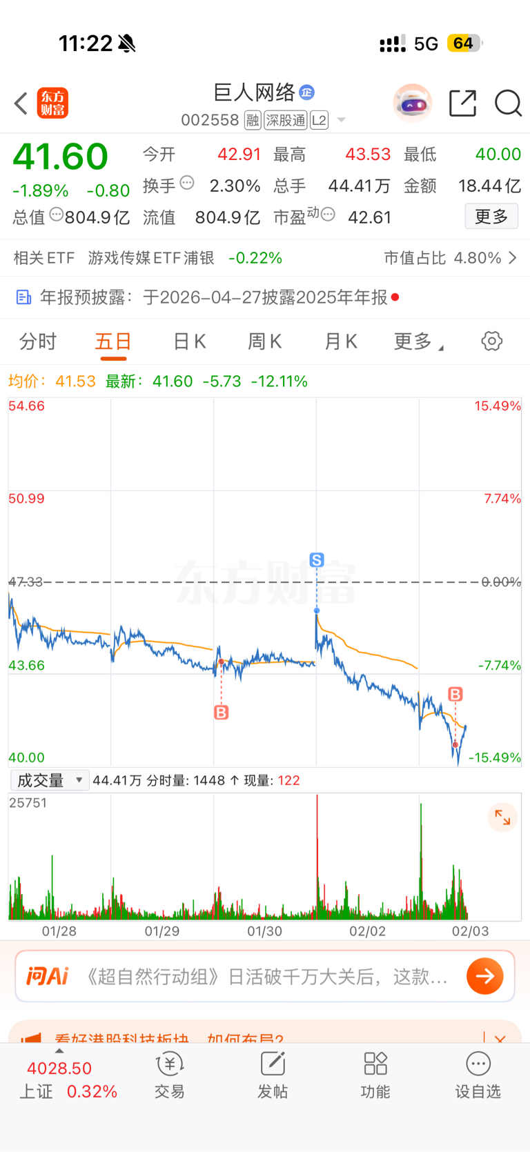 $巨人网络(SZ002558)$ 回来了