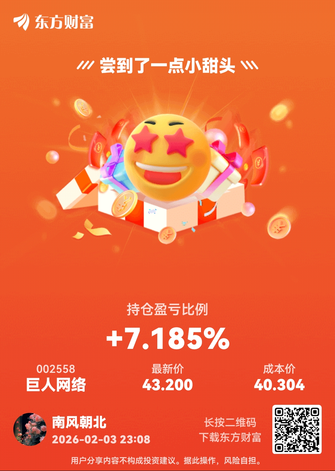 $巨人网络(SZ002558)$ 明天早上不要再跌了,稳在43.5就可以了