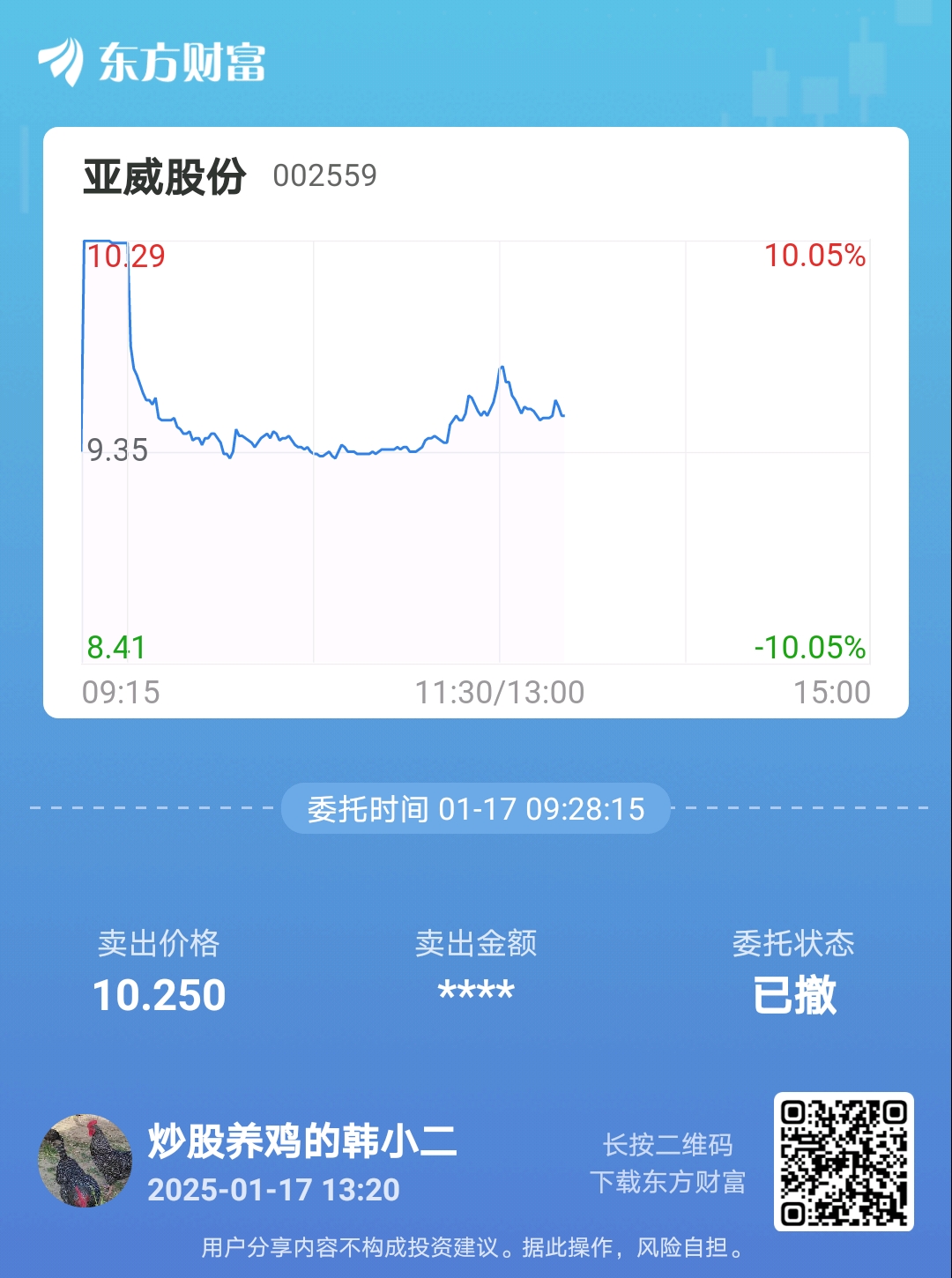 温馨提示: 1.根据《证券法》规定,禁止编造、传播虚假信息或者误导性信息,扰乱证券市场;2.用户在本社区发表的所有资料、言论等仅代表个人观点,与本网站立场无关,不对您构成任何投资建议。用户应基于自己的独立判断,自行决定证券投资并承担相应风险。《东方财富社区管理规定》