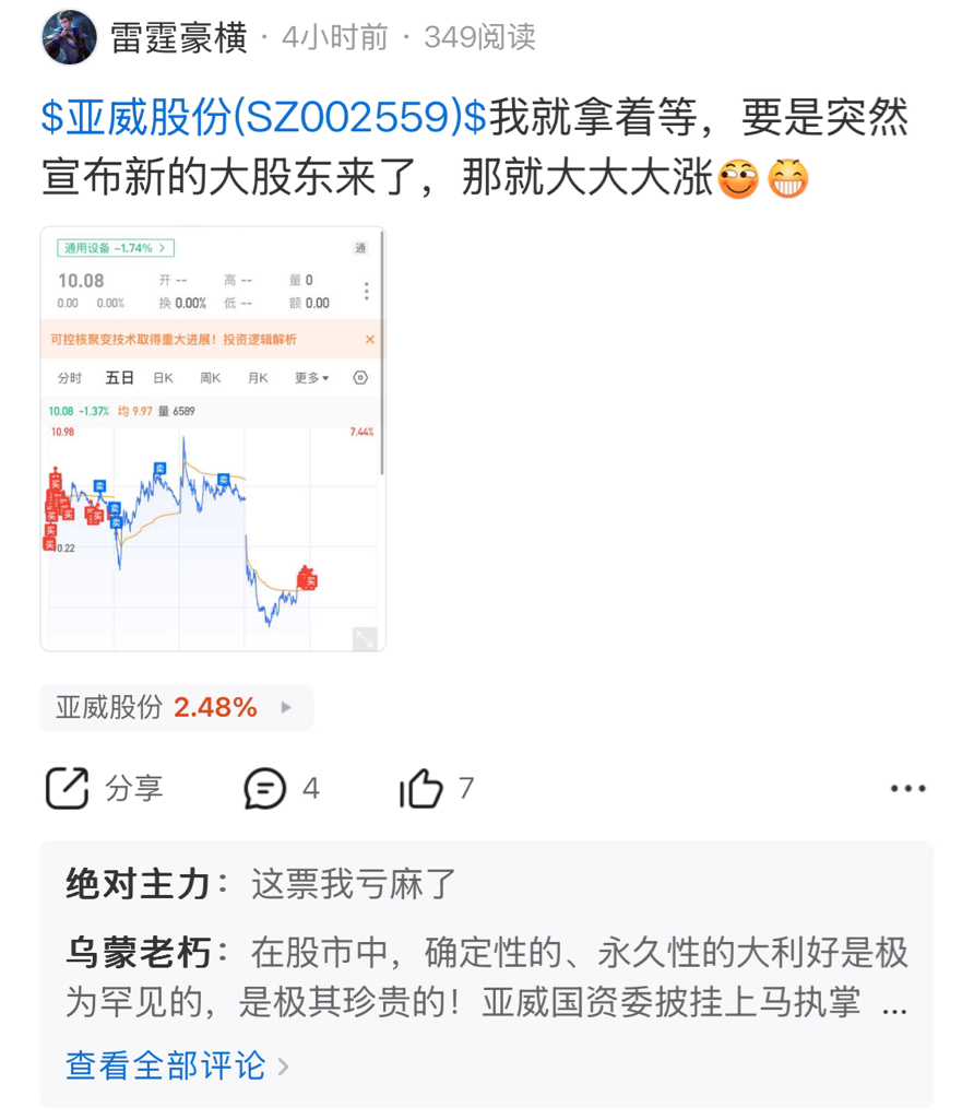 温馨提示: 1.根据《证券法》规定,禁止编造、传播虚假信息或者误导性信息,扰乱证券市场;2.用户在本社区发表的所有资料、言论等仅代表个人观点,与本网站立场无关,不对您构成任何投资建议。用户应基于自己的独立判断,自行决定证券投资并承担相应风险。《东方财富社区管理规定》