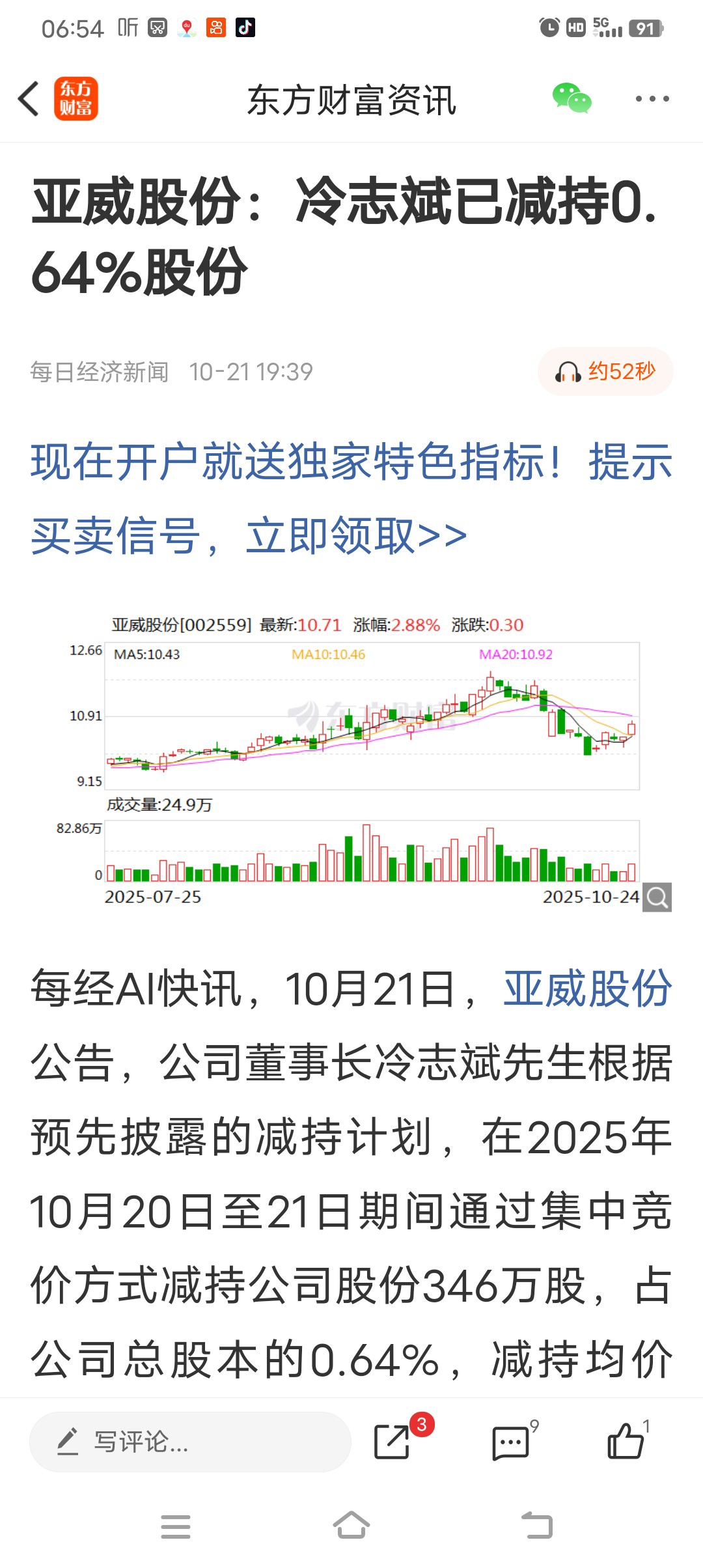 $亚威股份(SZ002559)$ 真是没格局,股价才10元就减持,,,
