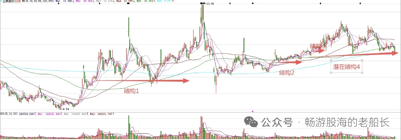 $亚威股份(SZ002559)$ 股价下跌幅度明显,再度回踩了年线。短线来看,周五股价还有惯性回踩,但是探底回升是正常的。年线附近,通常是中期调整结束的位置。图中标注的结构1突破,意味着股价处在比较大的上涨趋势。结构2和结构3突破,意味着波段上涨开始。潜在结构4是结构3突破后的回踩,是正常的调整。