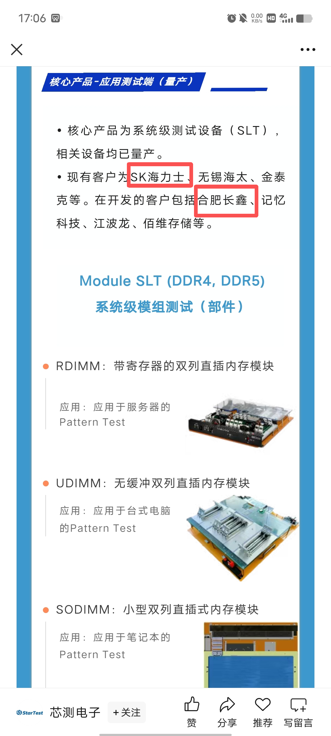 给持有亚威的股友打打气,苏州芯测电子有限公司官网介绍,货真价实的SK海力士、合肥长鑫合作供应商,不做评论,有图有真相!不相信者可以自行公司官网求证:jy.tian@star-test.com
