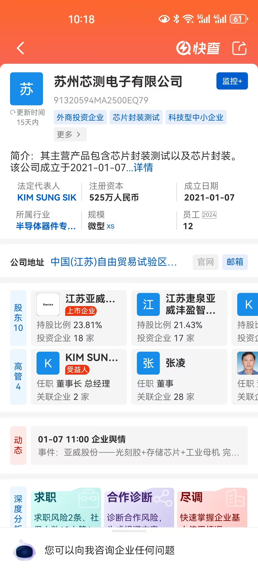 亚威股份存储芯片的概念,持有苏州芯测23.81%股权,有光刻胶、工业母机、存储芯