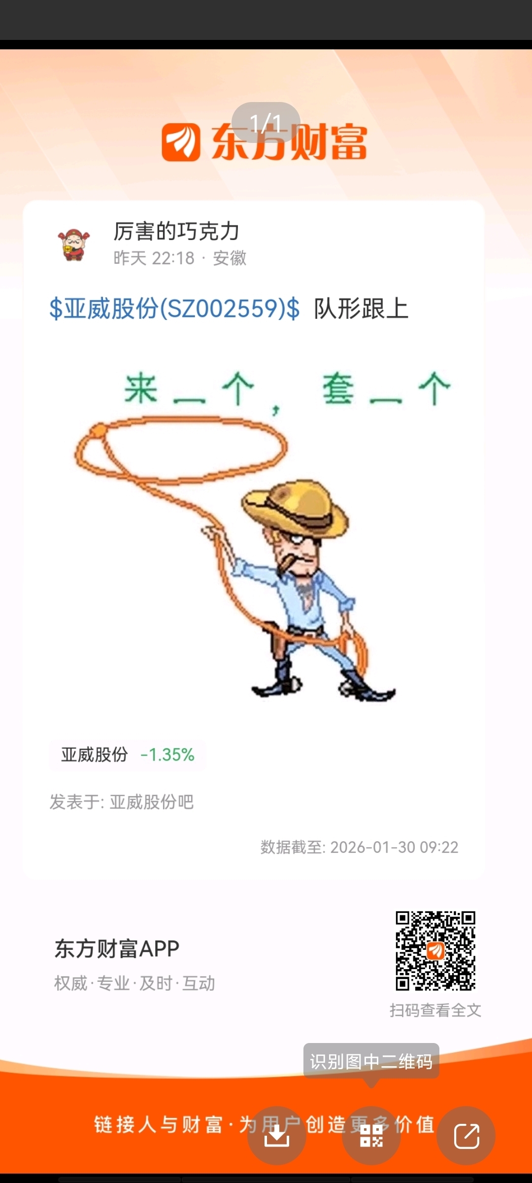 温馨提示: 1.根据《证券法》规定,禁止编造、传播虚假信息或者误导性信息,扰乱证券市场;2.用户在本社区发表的所有资料、言论等仅代表个人观点,与本网站立场无关,不对您构成任何投资建议。用户应基于自己的独立判断,自行决定证券投资并承担相应风险。《东方财富社区管理规定》