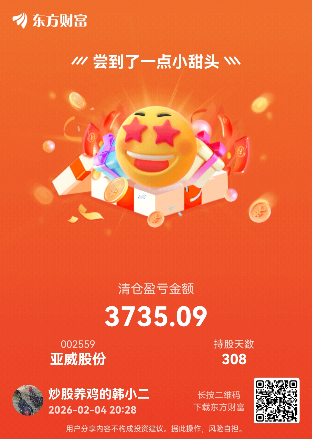 温馨提示: 1.根据《证券法》规定,禁止编造、传播虚假信息或者误导性信息,扰乱证券市场;2.用户在本社区发表的所有资料、言论等仅代表个人观点,与本网站立场无关,不对您构成任何投资建议。用户应基于自己的独立判断,自行决定证券投资并承担相应风险。《东方财富社区管理规定》