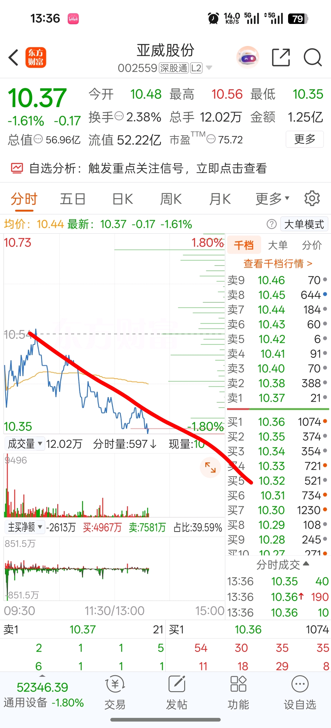 $亚威股份(SZ002559)$ 最经典的砸盘k线