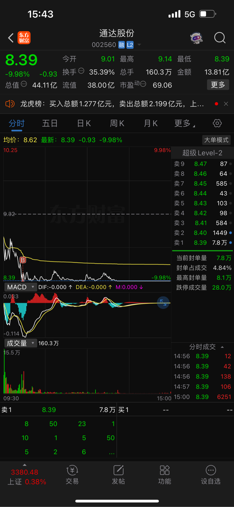 $通达股份(SZ002560)$ 封死了,明天又是大低开