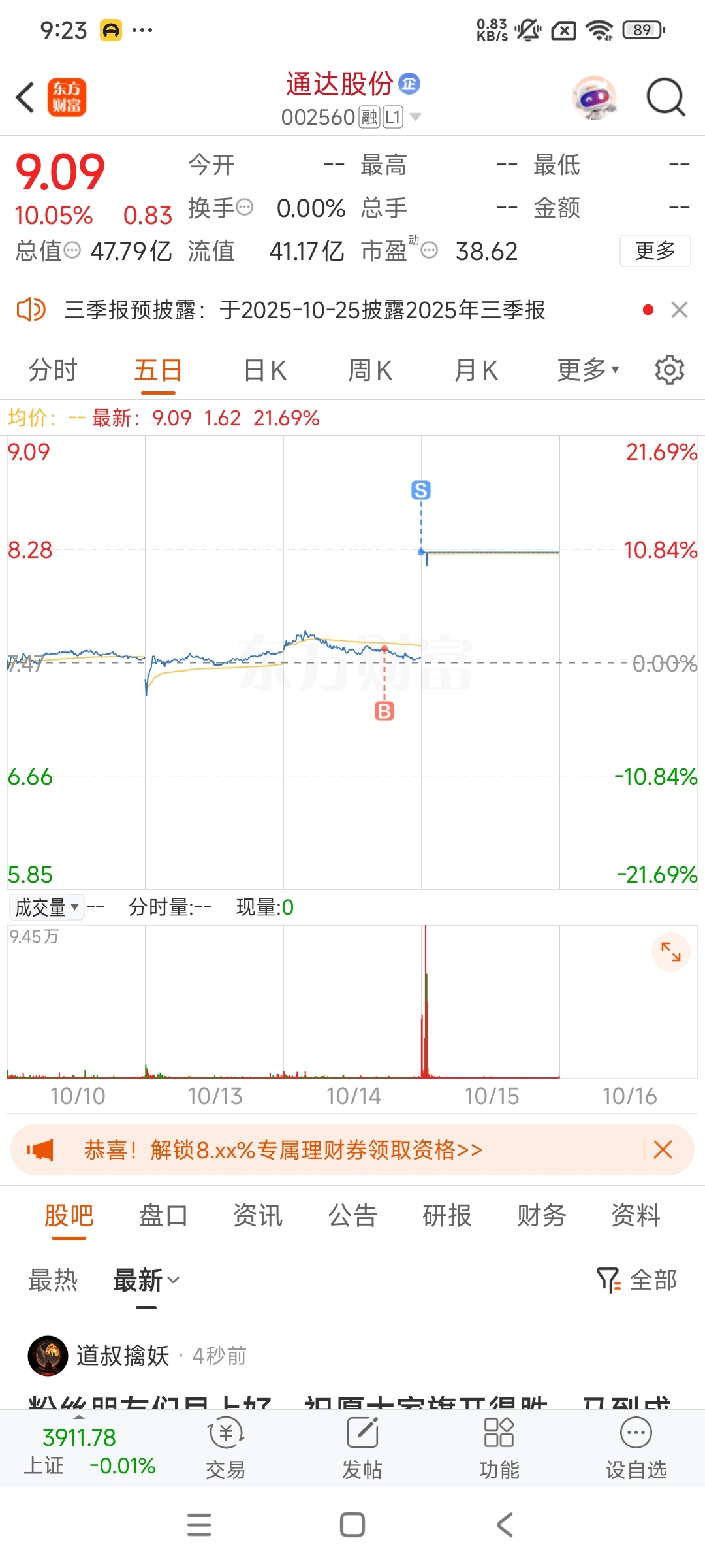 $通达股份(SZ002560)$ 本以为我是个高手,原来也是个韭菜。