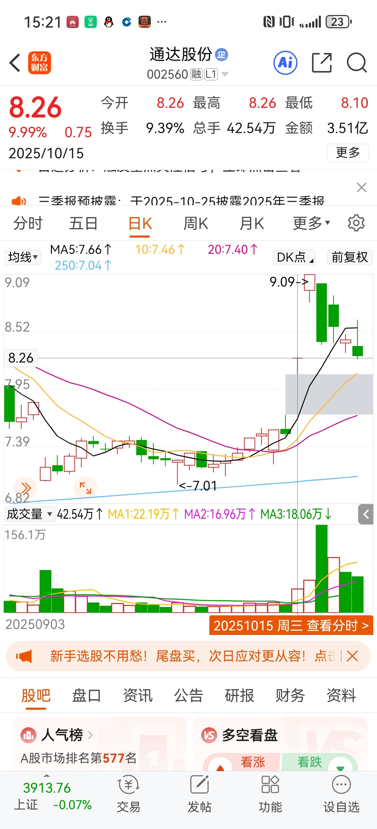 $通达股份(SZ002560)$ 826尾盘买入,对错明天出局,你要闷杀出货那我也没办法。