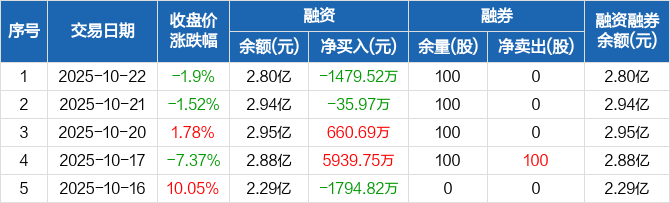 通达股份:融资净偿还1479.52万元,融资余额2.8亿元(10-22)