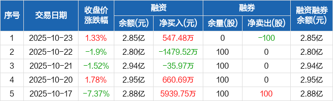 通达股份:融资净买入547.48万元,融资余额2.85亿元(10-23)