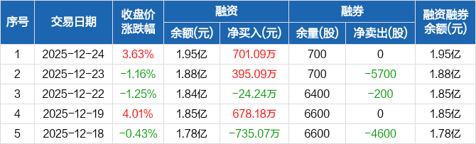 通达股份:融资净买入701.09万元,融资余额1.95亿元(12-24)