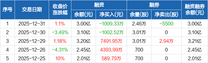 通达股份:融资净偿还1009.33万元,融资余额3亿元(12-31)