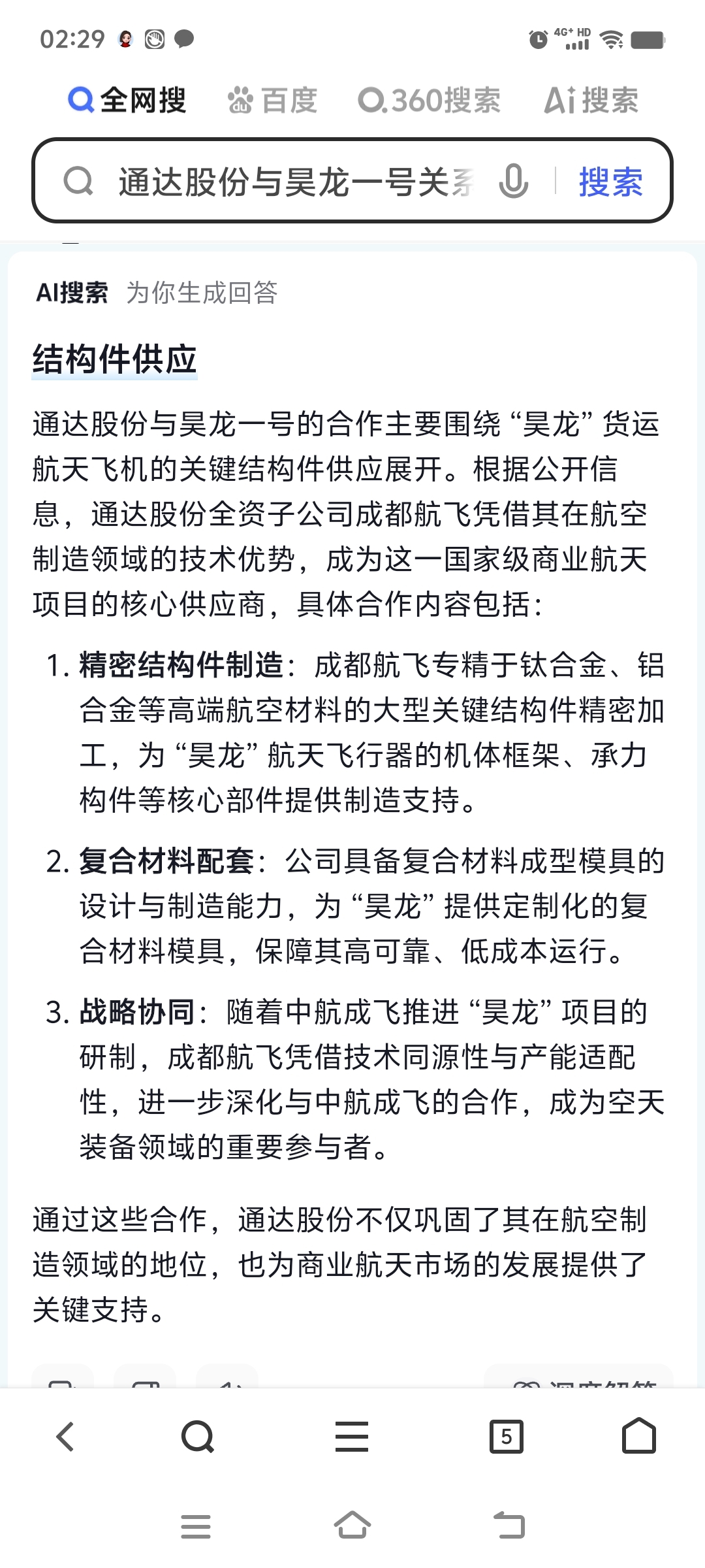 $通达股份(SZ002560)$ 通达股份与昊龙航天货运飞船的关系