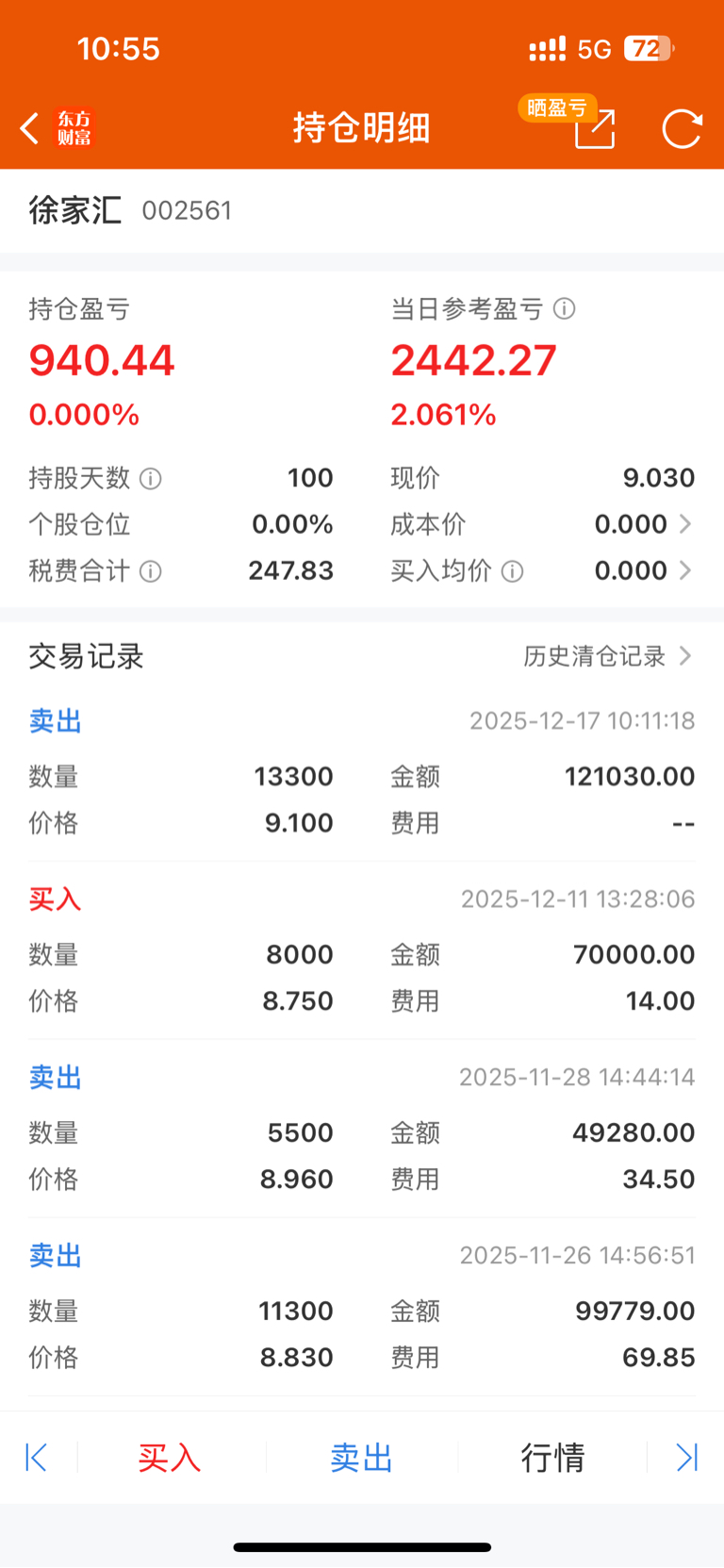 $徐家汇(SZ002561)$ 持股3个月,波动太小,没什么意思,一年多都没有涨停过的股,走了