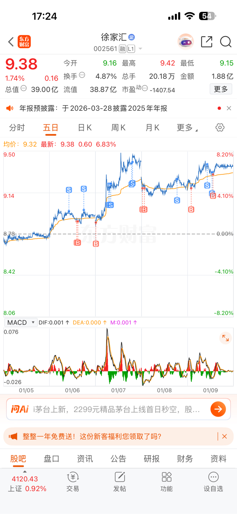 $徐家汇(SZ002561)$ 疯狂做t