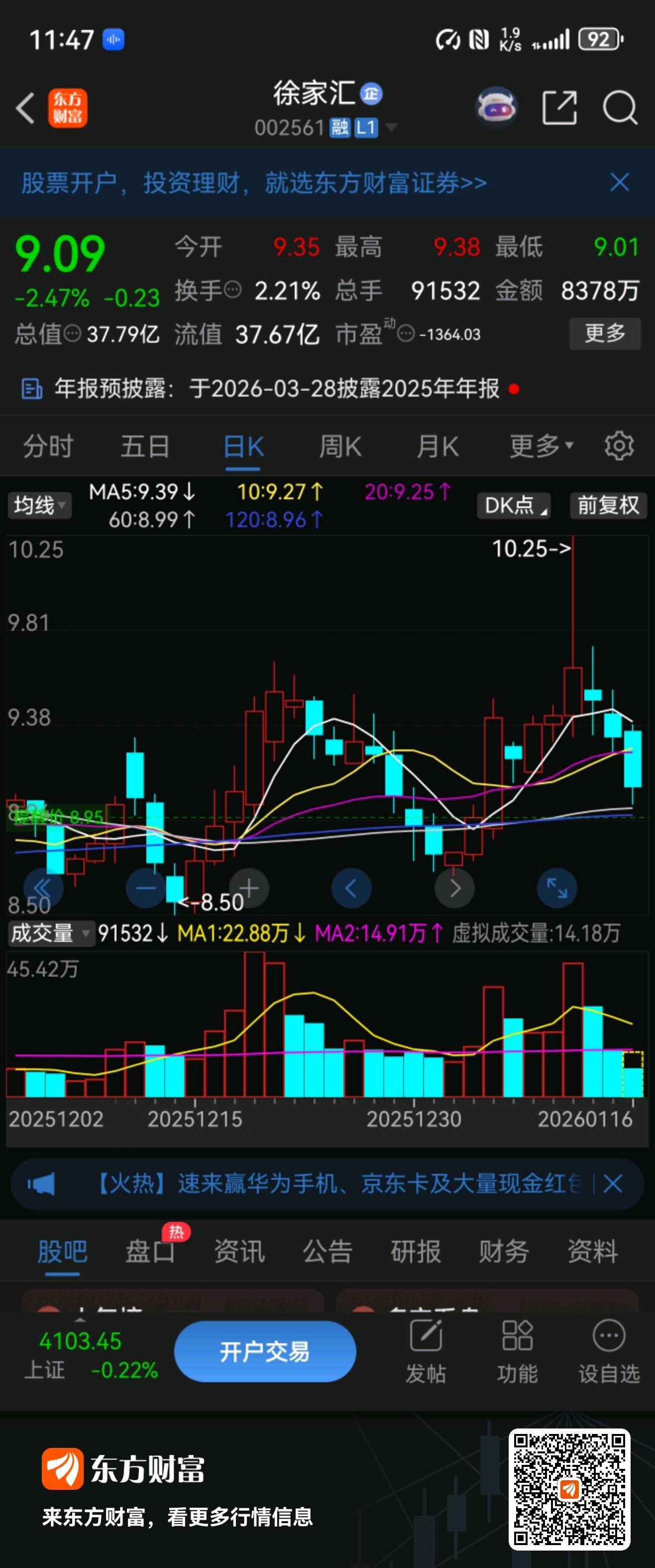 就跟你元旦时,想不到徐家汇会短暂破10元上方一样,主力还会给你惊喜和惊吓,除非你不天天看盘