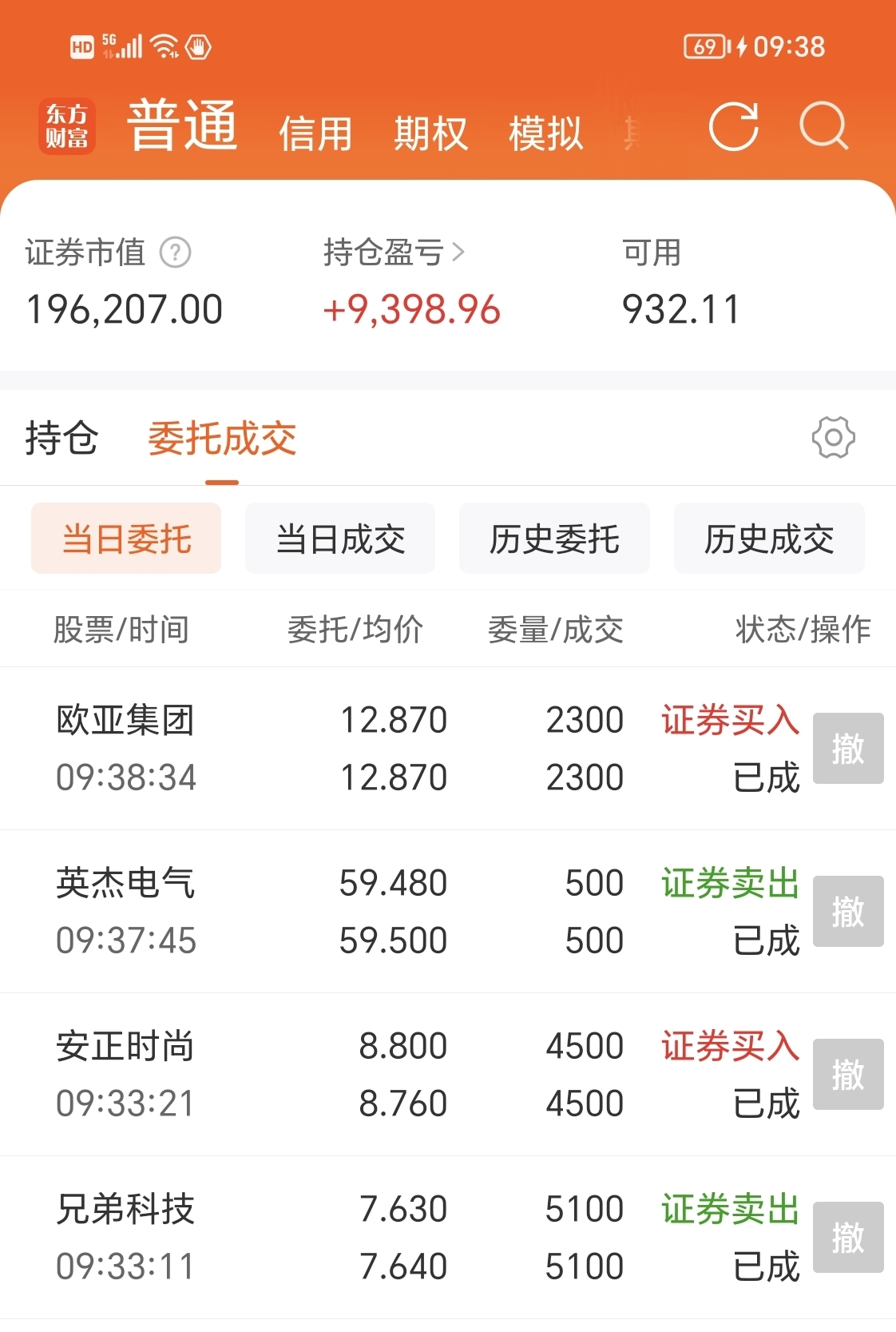 $兄弟科技(SZ002562)$ 本来我想这周重仓兄弟科技呢,结果昨天涨了卖了7万,今天又卖了7万,唉,清仓了。真是挣钱的票拿不住。卖了买了安正时尚。关键我昨天买的核聚变挣10个点竞价没卖,负4挣6个点卖了