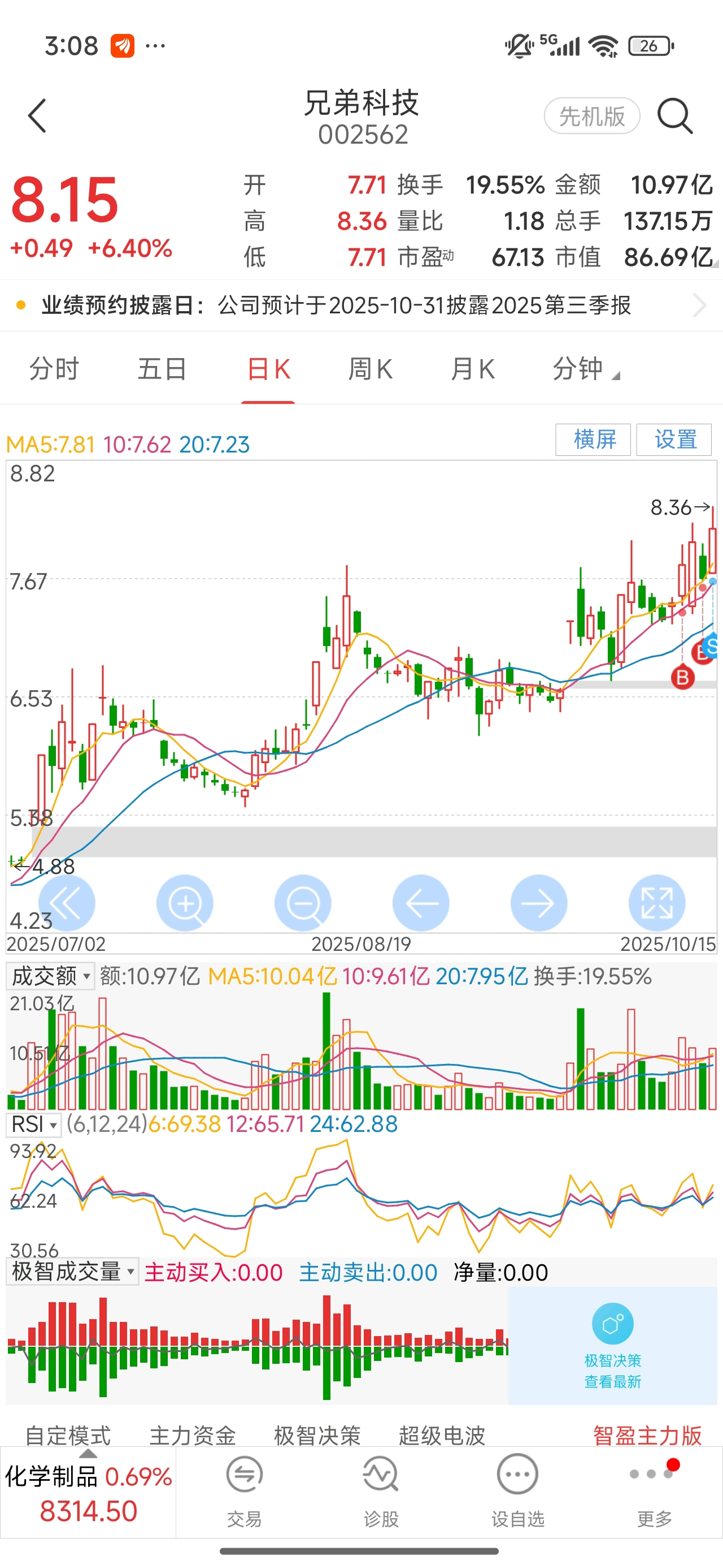 $兄弟科技(SZ002562)$ 8.05把我洗出去了