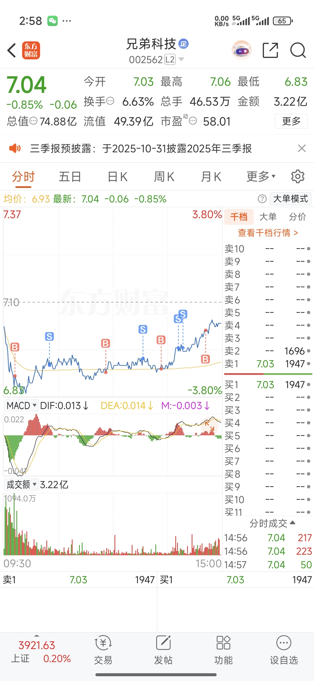 $兄弟科技(SZ002562)$ 忍不了你,2分都要T你