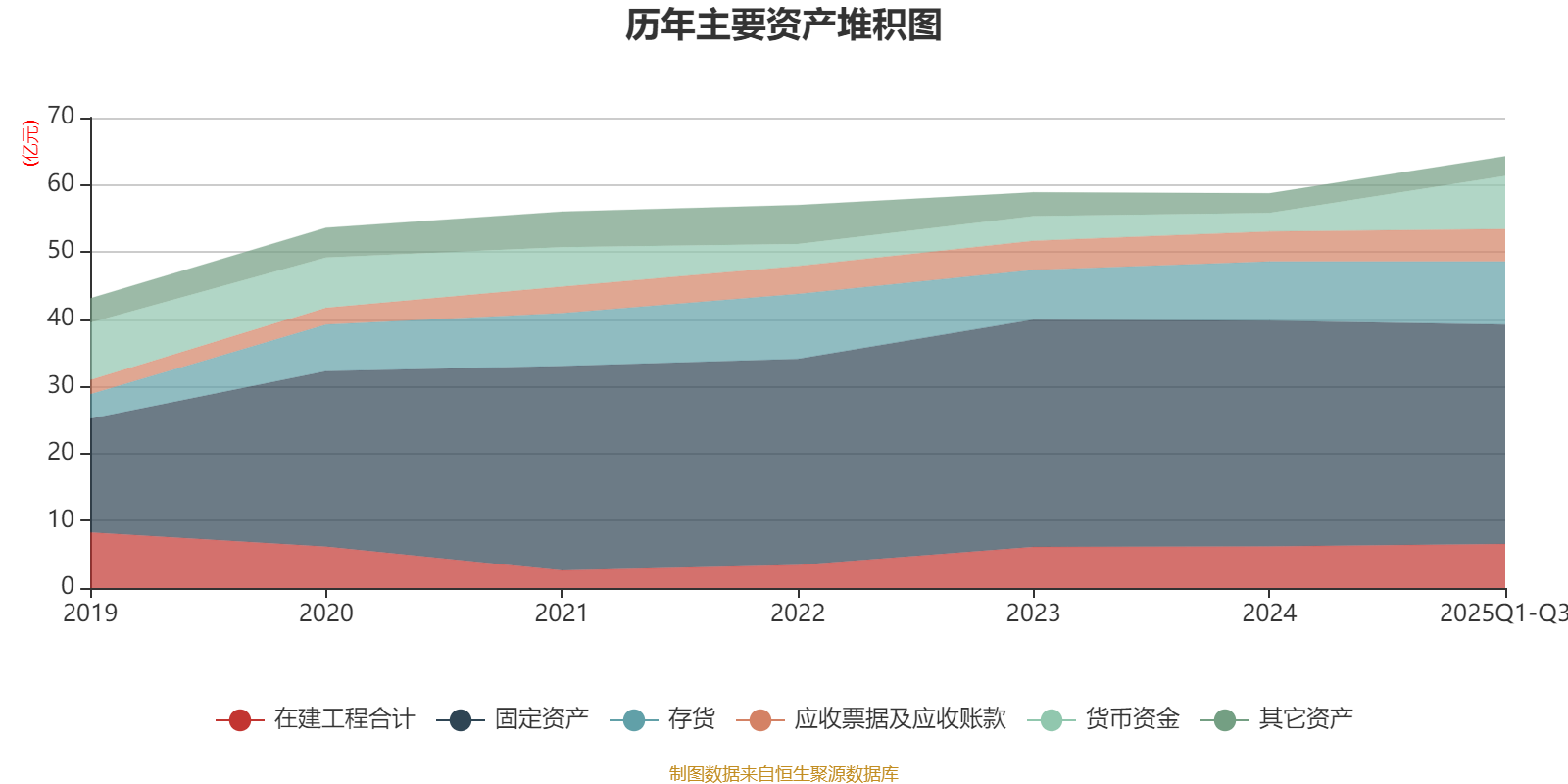 资产重大变化方面,截至2025年三季度末,公司货币资金较上年末增加185.25%,占公司总资产比重上升7.58个百分点;固定资产较上年末减少2.8%,占公司总资产比重下降6.38个百分点;存货较上年末增加6.68%,占公司总资产比重下降0.37个百分点;在建工程合计较上年末增加5.73%,占公司总资产比重下降0.35个百分点。