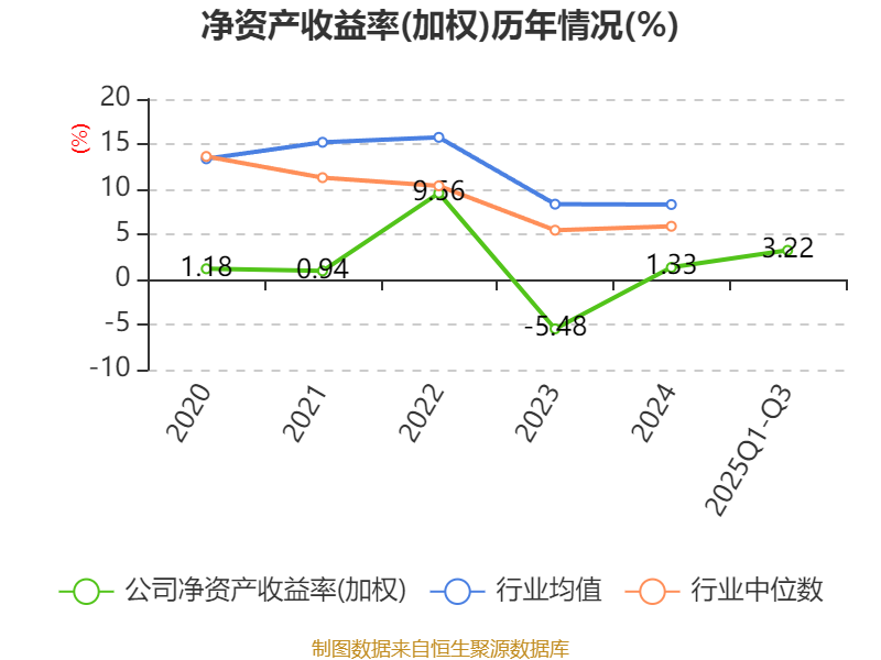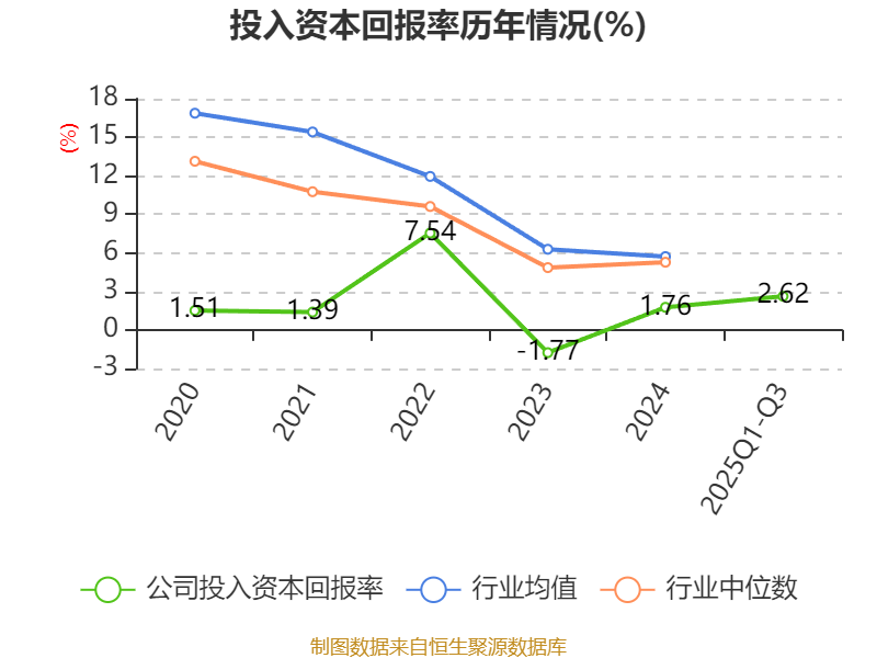 盈利能力方面, 2025年前三季度公司加权平均净资产收益率为3.22%,同比上升2.19个百分点。公司2025年前三季度投入资本回报率为2.62%,较上年同期上升1.21个百分点。