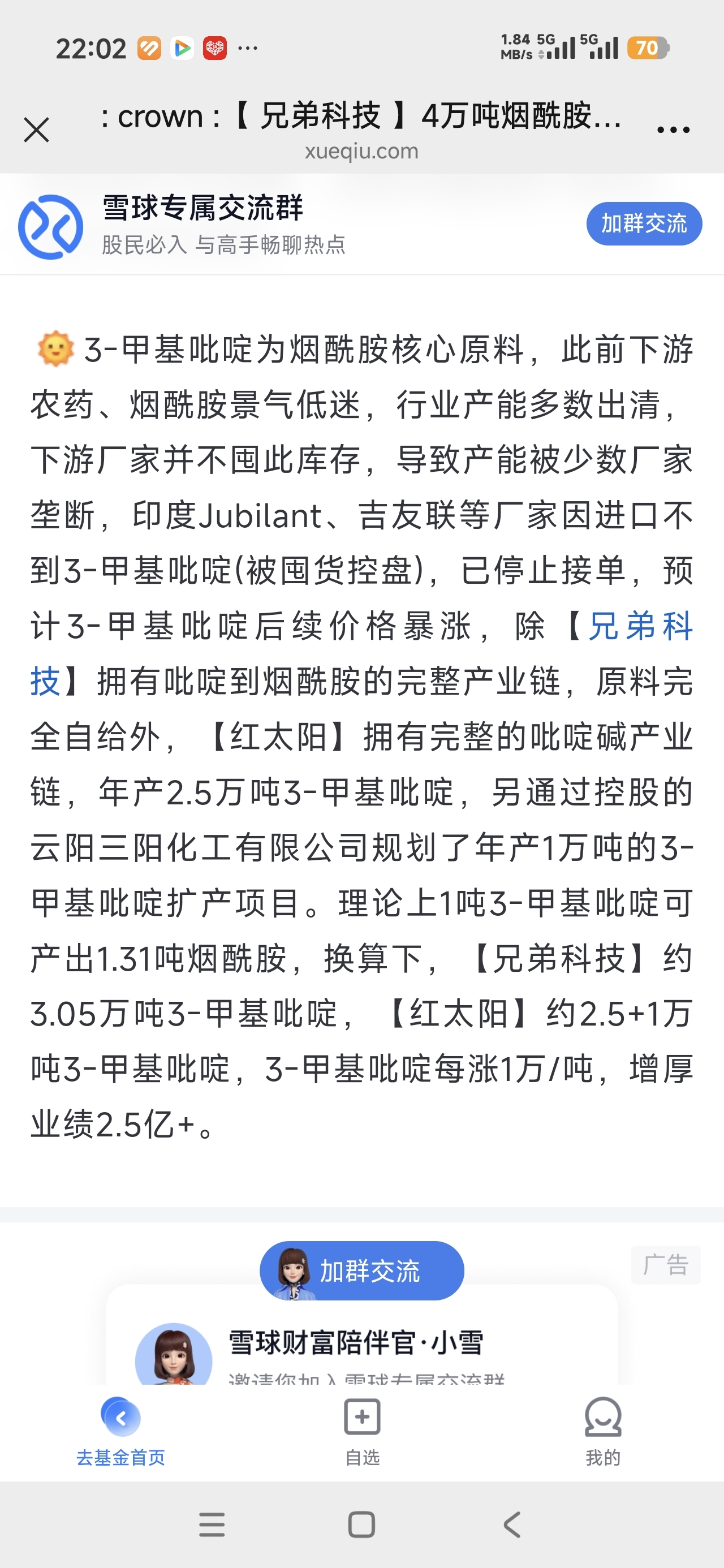烟酰胺2月份涨价了,兄弟科技有8000吨的产能,这才是这几天大涨的原因,轿上的朋