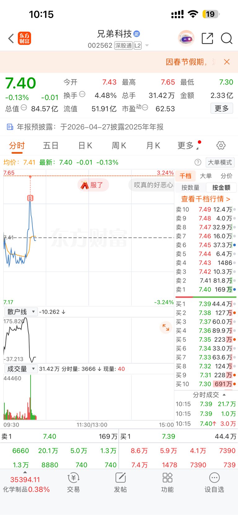 $兄弟科技(SZ002562)$ 昨天都清仓了,以前设置的一个条件单忘记关了,给挂顶上了
