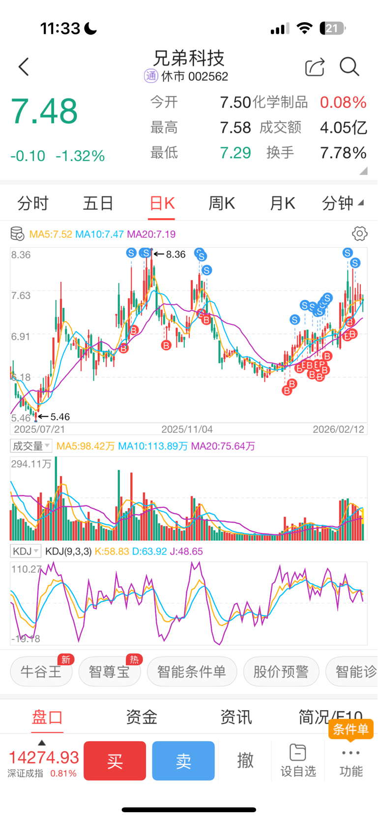$兄弟科技(SZ002562)$ 跟着主力的动向有几个月了,买卖次数也很多,发个有交易痕迹的截图,红色显示买入,蓝色是卖出。当时月k线显示每月换手率达到四倍,特点每股价格便宜,每股净资产相对股价极高,2025年三季度外资摩根和瑞银都有买入,说明价值投资有人做过功课。自己也做了研究,发现Peek产品耐温300摄氏度以上,硬度和铝一样,兄弟是原材料供应商,价格比国际市场便宜20-30%,有两个稳定客户,其中一个是上市公司,供货稳定,另一个是民营企业,供销合同以原材料之上加乘35%,也就是说利润不会被原材料价格涨幅吞噬,做多多年制造企业高管的我立马对兄弟老板竖起大拇指,买这股票起码不会因企业经营问题被套,Peek市场以20%增速发展,耐温强度高可以用在航天紧固件,20万颗低轨道卫星要上天,终端客户的火箭股票已经160元了,兄弟科技手上产品是源头老大,市场份额最大。国际金属材料价格飞涨,特别是新能源汽车上的金属完全可以被性价比达到规模经济的Peek产品替代。再就是全球维生素又是老大,说明全球市场份额更大,可以把战略物资白银稀土限制出口,也可以限制战略物资维生素,提高出口价格。基本面好,价值很高,价格在地板上,这就是宝。二级市场在看,主力反复高买低卖,完全就是量化特征,主力从8块多出货到了6.13元开始陆续吸货,那咱就跟,6.4主力进,咱就进,主力洗盘咱就跟着做T,主力很狡猾,就是避开交易所上龙虎榜的条件,不显山水,最后在最近减持显示中信、国泰和特殊的专业机构席位,咱可是曾是上交所第24期证券交易员和国债期货第27期期货交易员,现在不从业了,经验还是丰富的,这种股票很有可能是2026年的明星候选股。如果保险资金入市,不买这个股票难道去买其他高风险股票吗?兄弟科技几乎是零风险股票。年前最后一个交易日验证量化交易被散户抢盘触发涨到7.65,硬是被主力压下,猜测主力还想要更多的筹码,包括大股东减持的和定向增发的以及市场上割肉散户韭菜的。主力底仓没动,还在洗盘吸货。6.8买的14万股,7.11卖了,7.3买回,7.43卖了,7.58买回,7.89卖了再买回,成本越做越高,好在量化特征明显,总能买回来,但越想越怕,万一游资介入,那就错过主升浪。主力反复震荡洗盘,估计也达到40%控盘,还在吸便宜筹码。大盘连涨十几个阳线,2026年将是吸引外资入市主旋律,人民币与黄金挂钩,人民币计价资产都会上涨,兄弟科技价值严重低估,现在就是要锁仓,价格跌了就买进,2025年累计投资收益率85%,争取2026年累计收益率过百,就靠兄弟科技啦