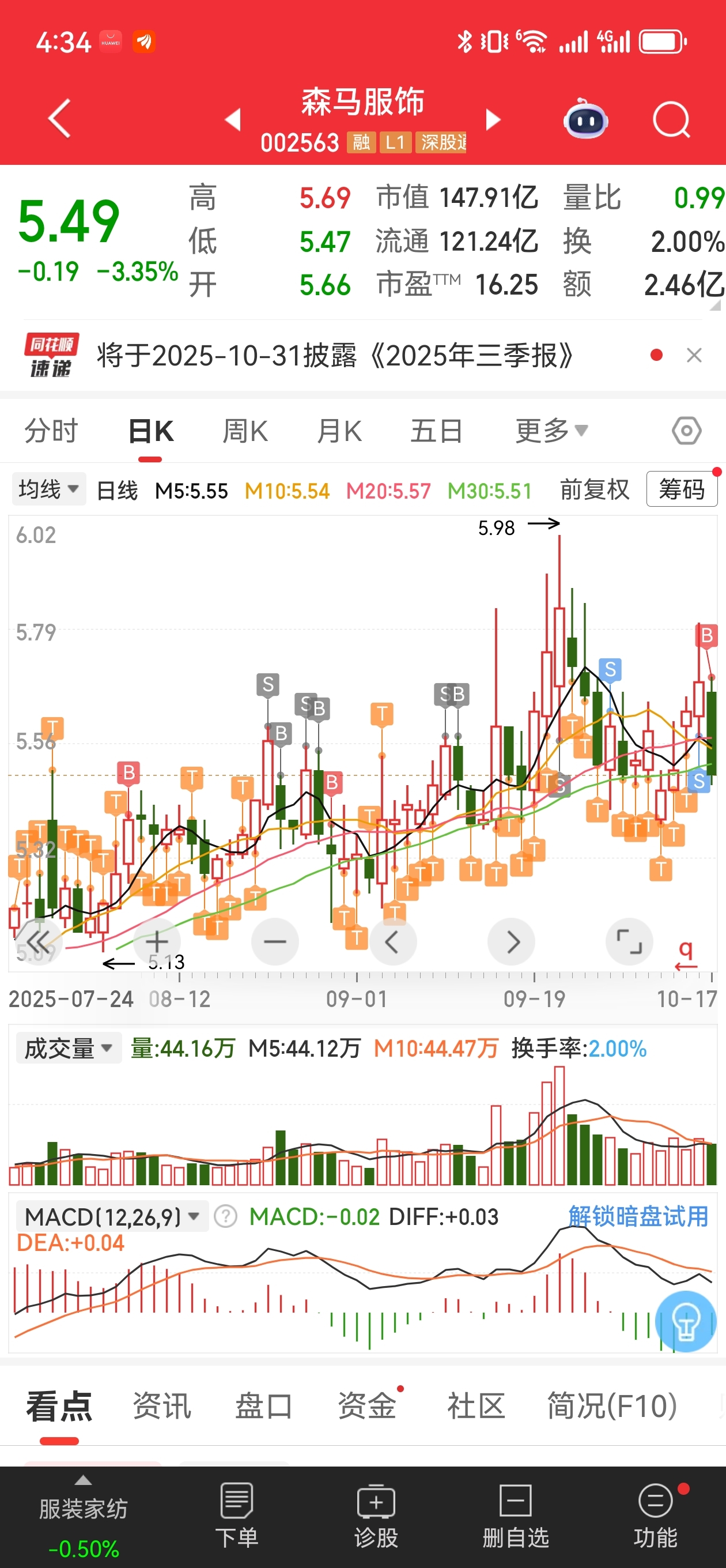 $森马服饰(SZ002563)$ 感谢兄弟们,昨天清仓今天建仓