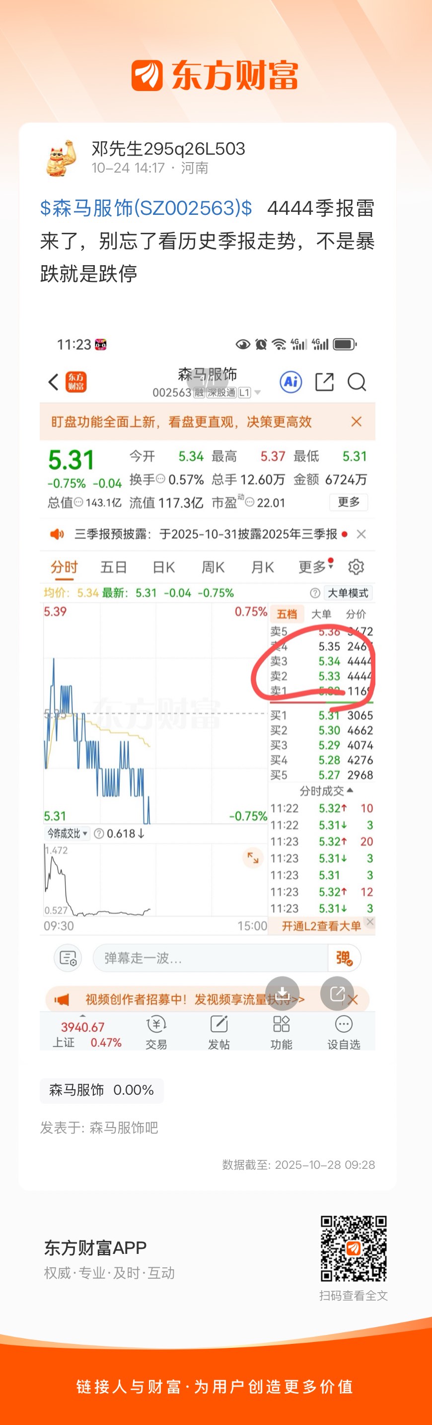 $森马服饰(SZ002563)$  4444季报雷来了,别忘了看历史季报走势,不是暴跌就是跌停
