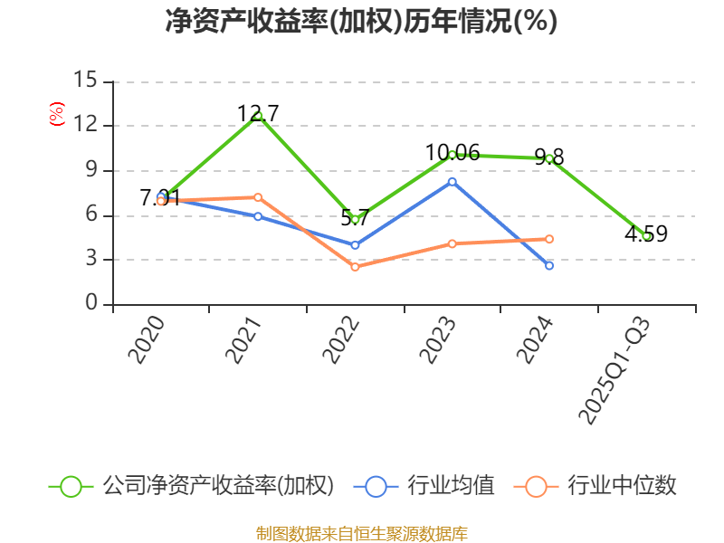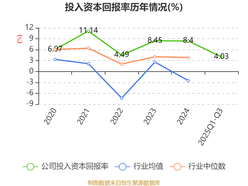盈利能力方面, 2025年前三季度公司加权平均净资产收益率为4.59%,同比下降1.96个百分点。公司2025年前三季度投入资本回报率为4.03%,较上年同期下降1.37个百分点。