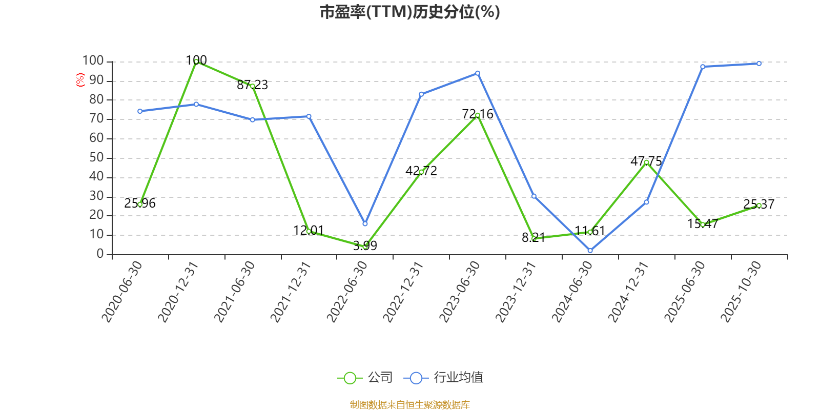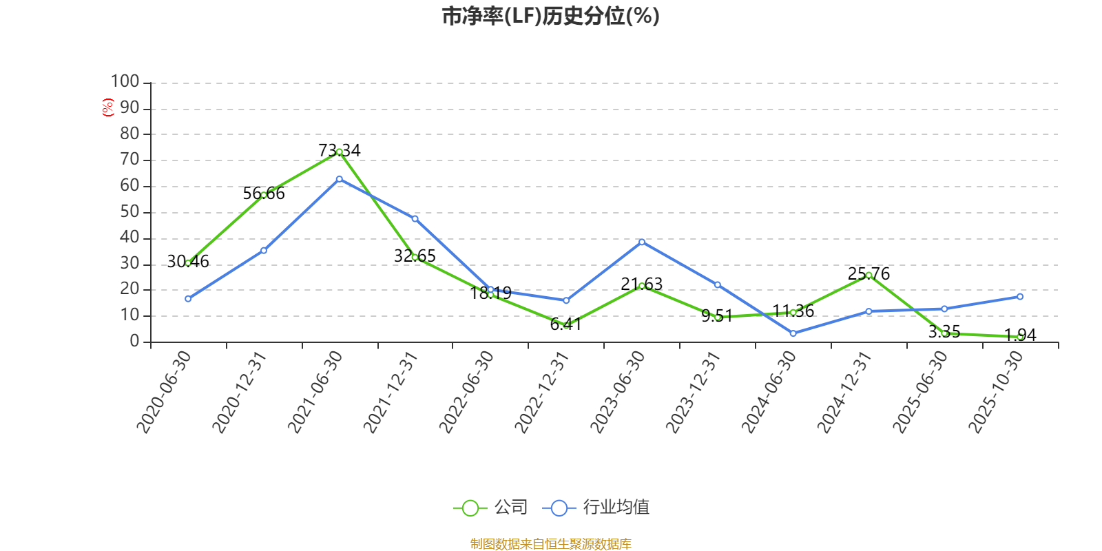 市盈率、市净率为负时,不显示当期分位数,会导致折线图中断。