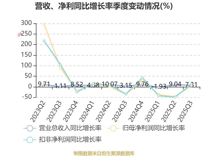 负债重大变化方面,截至2025年三季度末,公司应付票据及应付账款较上年末减少11.59%,占公司总资产比重下降1.87个百分点;短期借款占公司总资产的1.65%,上年末为0;其他流动负债较上年末减少29.9%,占公司总资产比重下降1.21个百分点;应付职工薪酬较上年末减少53.56%,占公司总资产比重下降0.58个百分点。