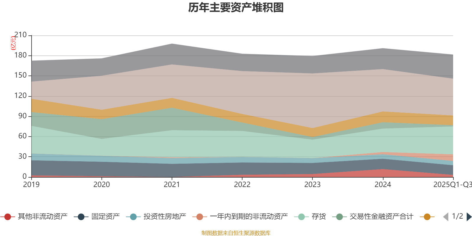 资产重大变化方面,截至2025年三季度末,公司存货较上年末增加18.97%,占公司总资产比重上升4.59个百分点;其他非流动资产较上年末减少74.22%,占公司总资产比重下降4.46个百分点;交易性金融资产合计较上年末减少80.08%,占公司总资产比重下降3.89个百分点;一年内到期的非流动资产较上年末增加196.89%,占公司总资产比重上升3.67个百分点。