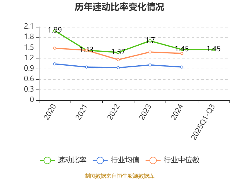 2025年前三季度,公司流动比率为2.1,速动比率为1.45。