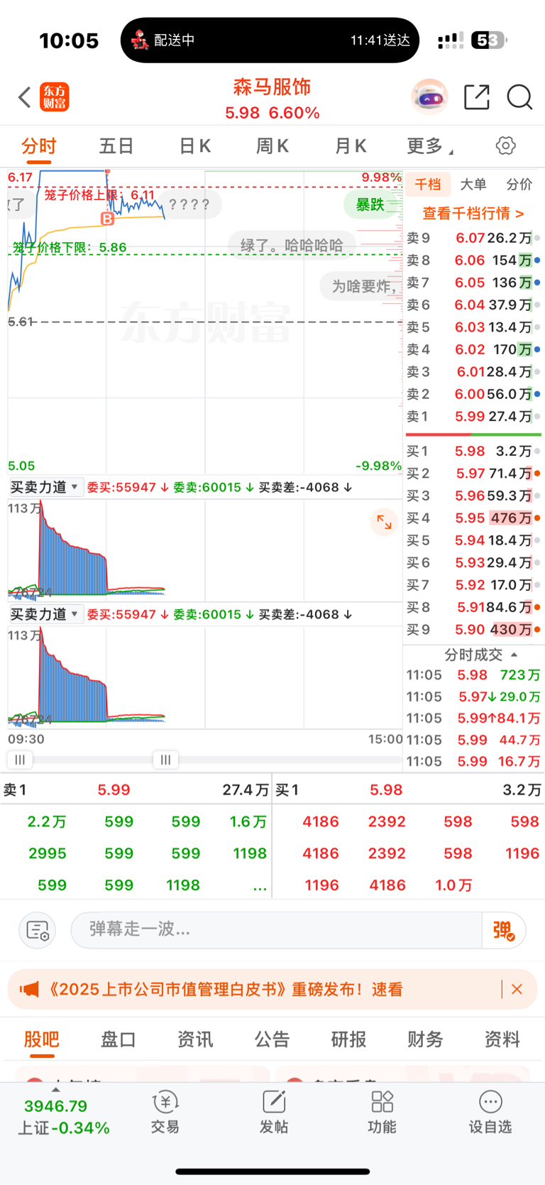 $森马服饰(SZ002563)$ 哦豁,挂山顶上了