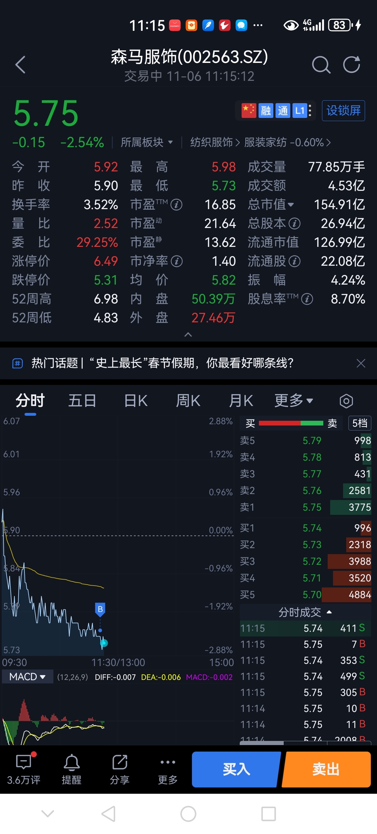 $森马服饰(SZ002563)$ 梭哈,感觉它会涨的