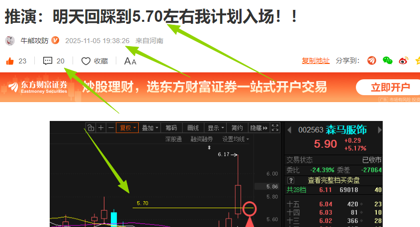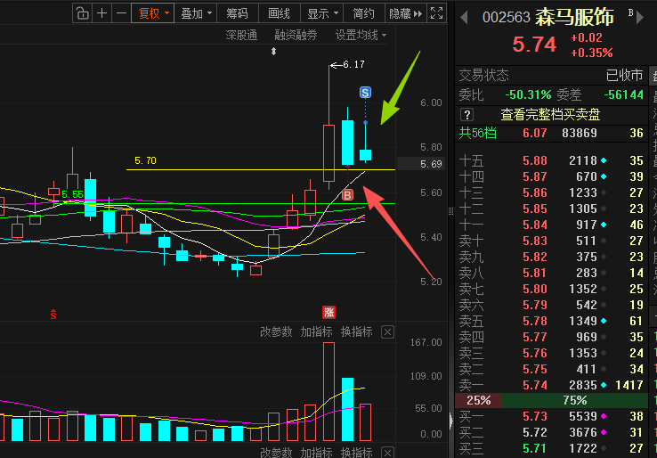 一周五天的时间里,短线好做的时间就一两天,其它时间不好做,主要原因还是市场乱动太快,节奏不好把握!老夫推演的这个5.70和走势只差一分钱,是非常精准的;短线一进一出,不贪不惧轻松获利3%左右!