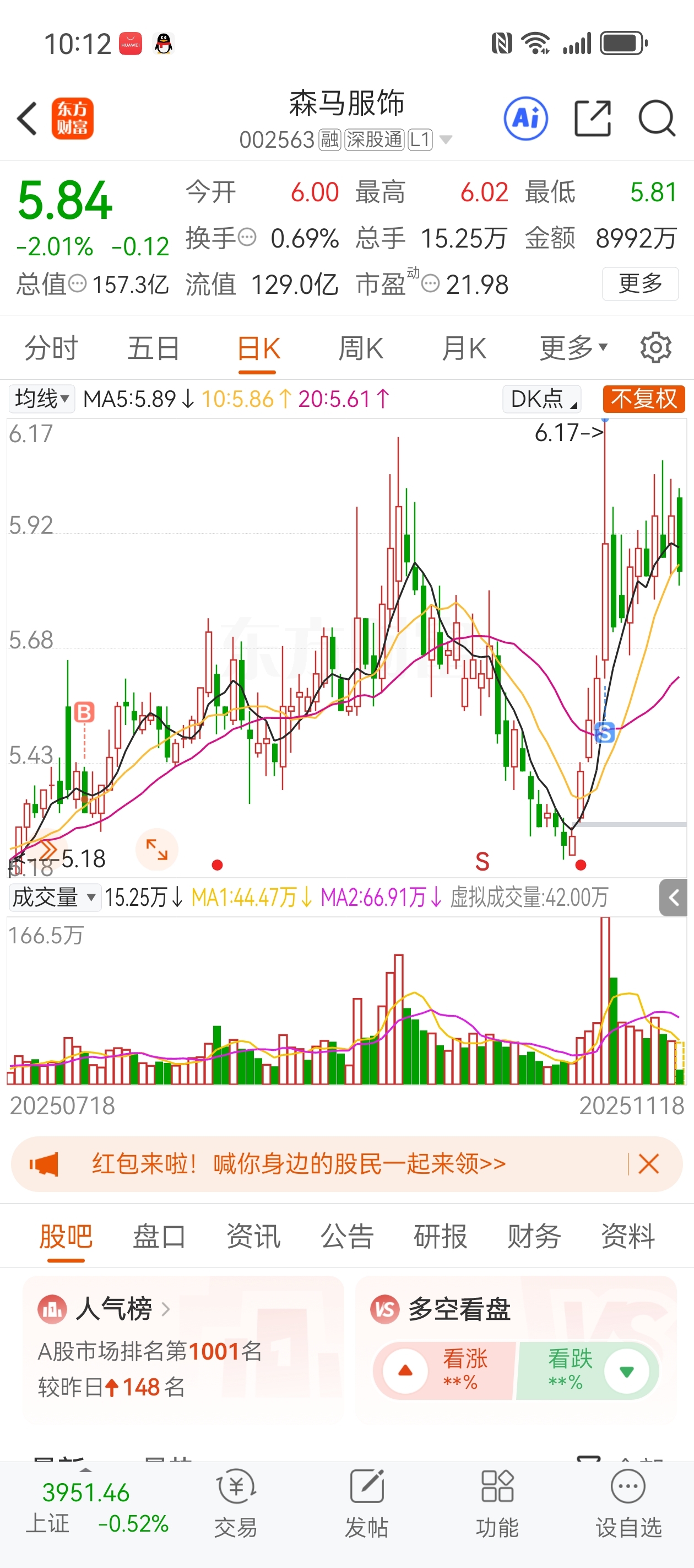 $森马服饰(SZ002563)$ 你快下来,我已迫不及待了