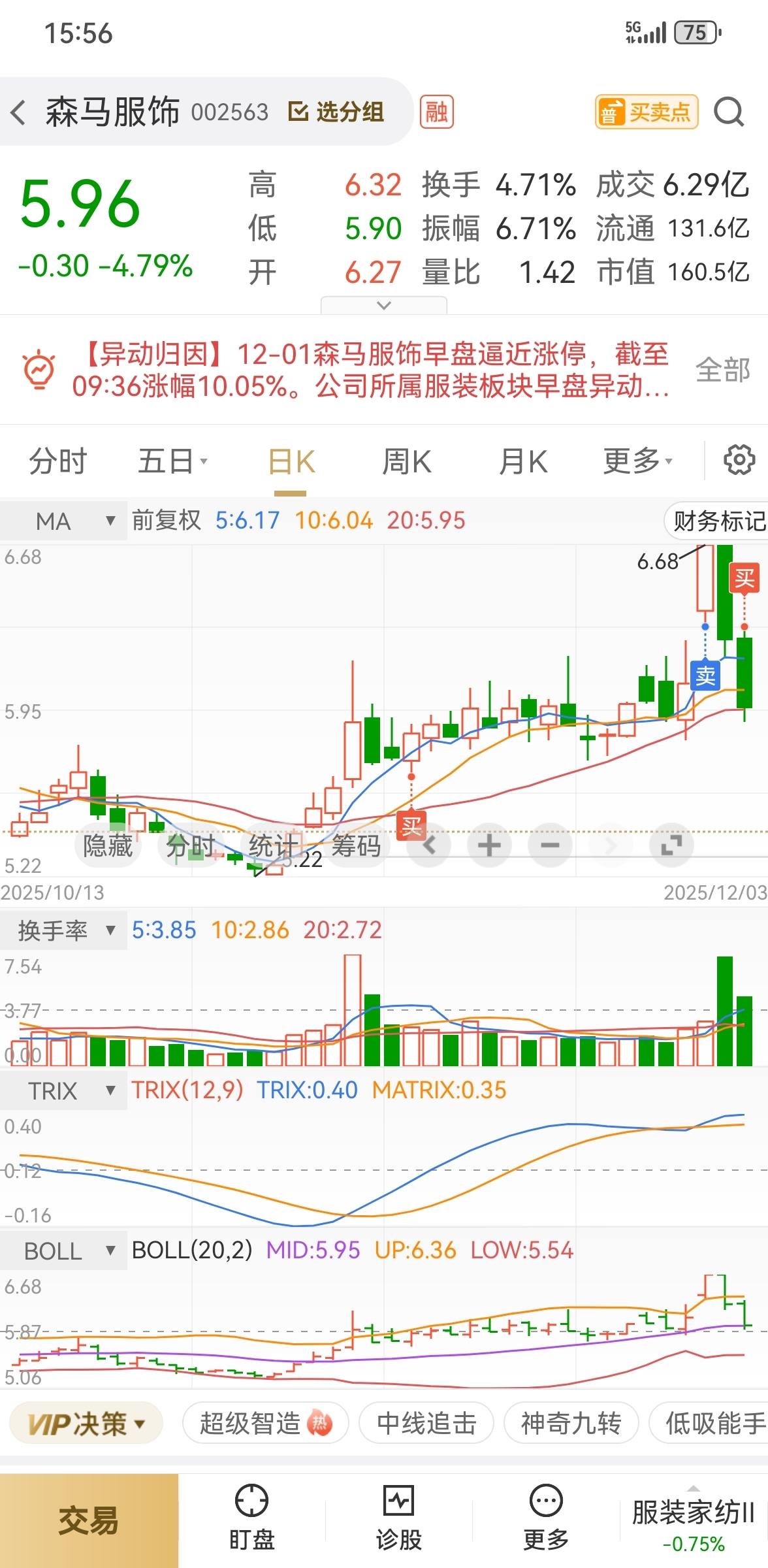 $森马服饰(SZ002563)$ 尾盘我又买回来了