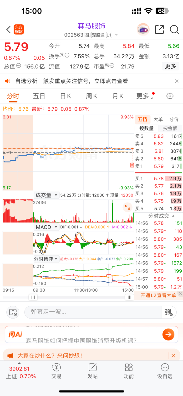 $森马服饰(SZ002563)$ 大家好,我是新入土的韭菜,过几天再割我,五天内保证给你们割一搓