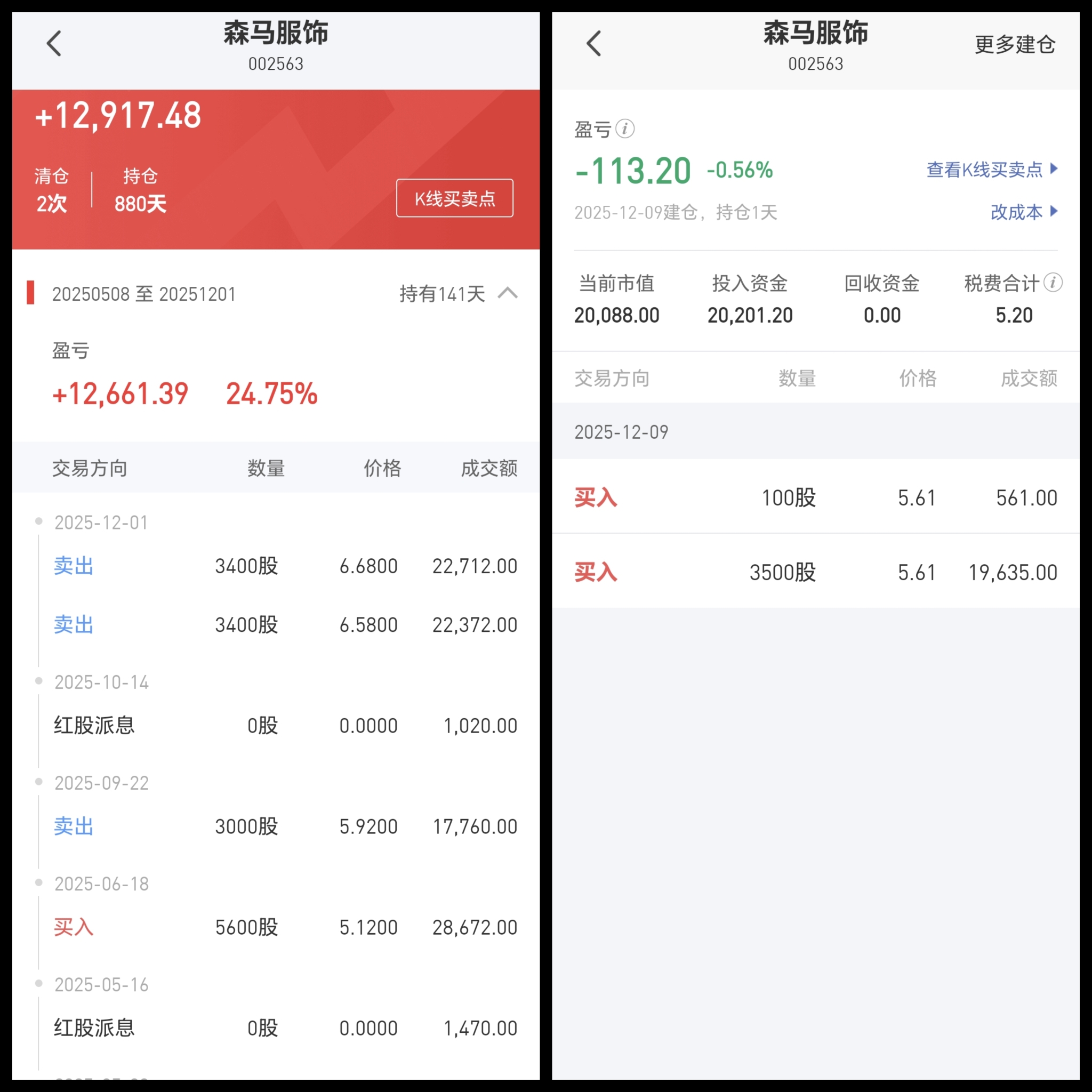 $森马服饰(SZ002563)$ 上周刚卖掉,今天就给加仓机会了