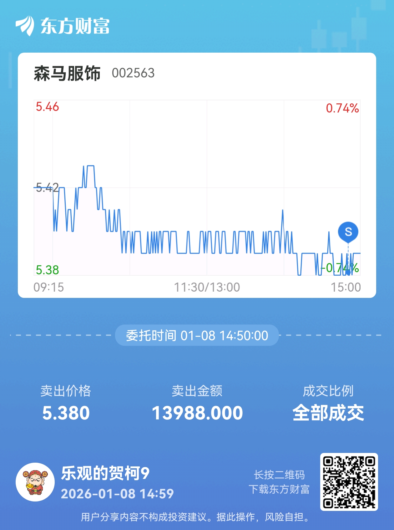 温馨提示: 1.根据《证券法》规定,禁止编造、传播虚假信息或者误导性信息,扰乱证券市场;2.用户在本社区发表的所有资料、言论等仅代表个人观点,与本网站立场无关,不对您构成任何投资建议。用户应基于自己的独立判断,自行决定证券投资并承担相应风险。《东方财富社区管理规定》
