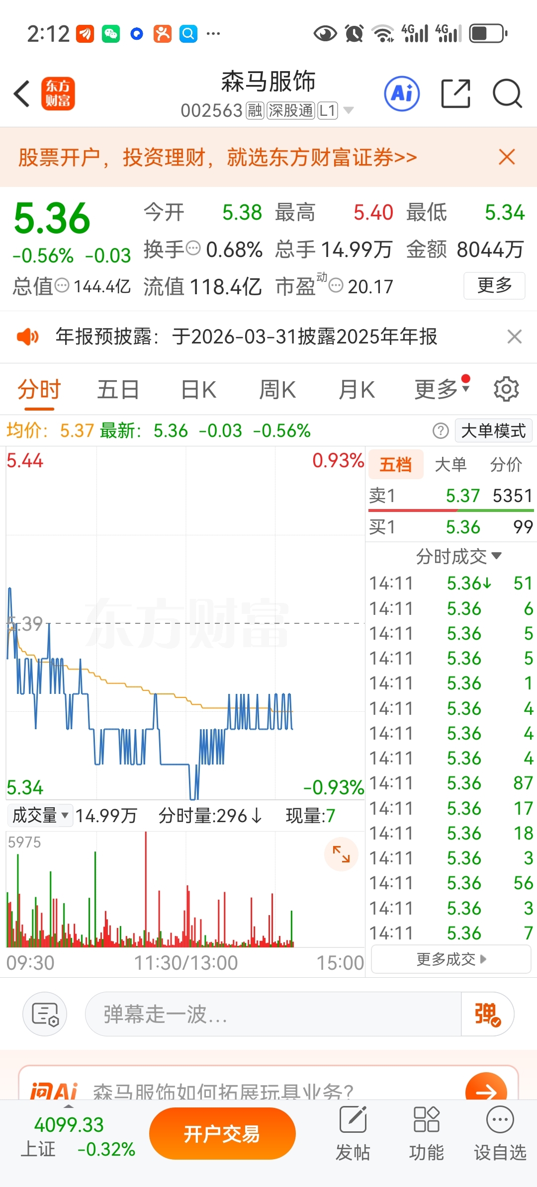 $森马服饰(SZ002563)$ 连续15笔都是卖单,跟涨停板一样